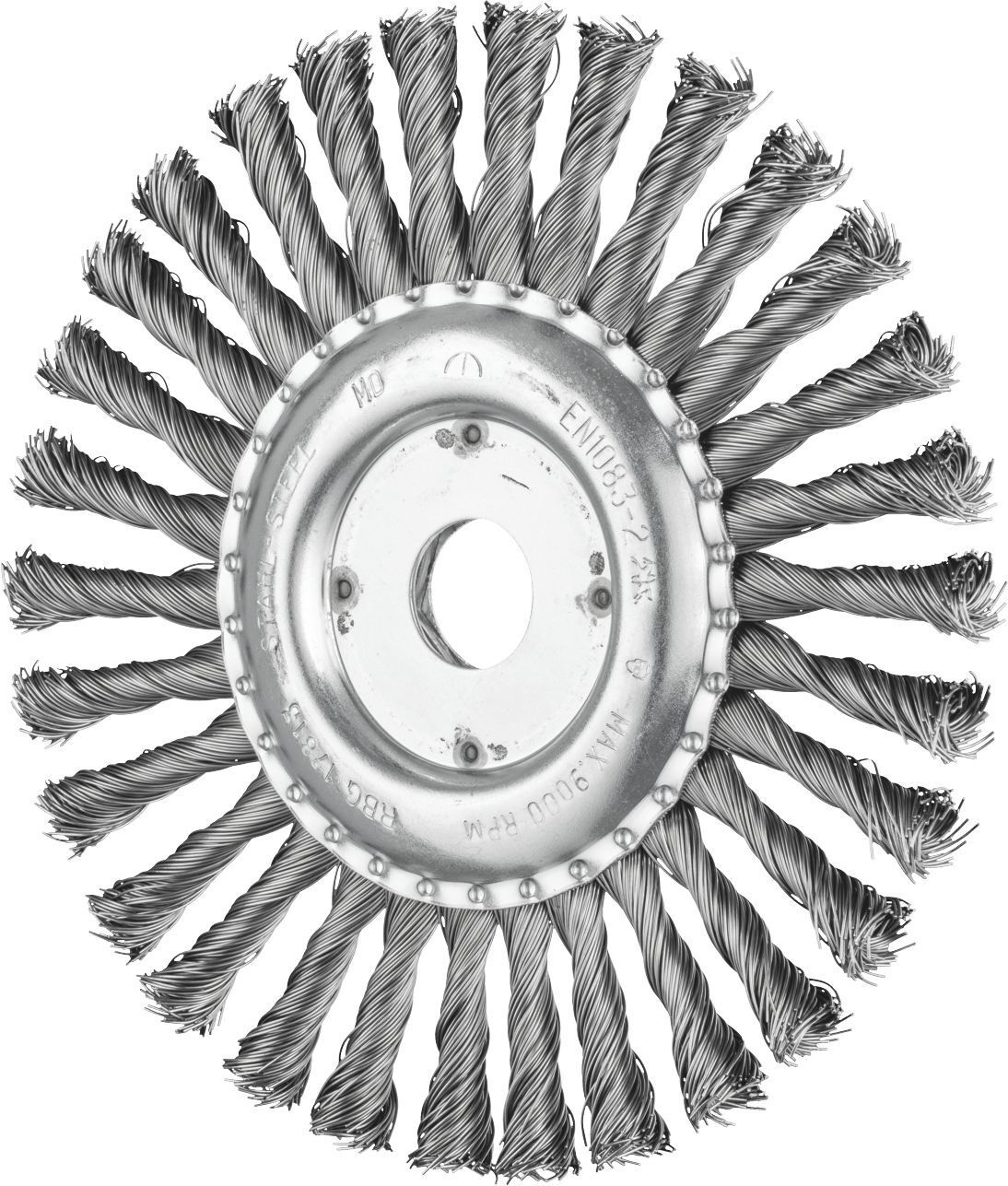Wheel Brush - Twist Knot STEEL Wire RBG 17813/22.2 ST 0.50 Aggressively working brush. For heavy-duty brushing in metalwork, such as descaling, rust removal, deburring, cleaning of weld seams and removal of adhesive residues. Recommendations for use: - Optimum results with high-performance angle grinders